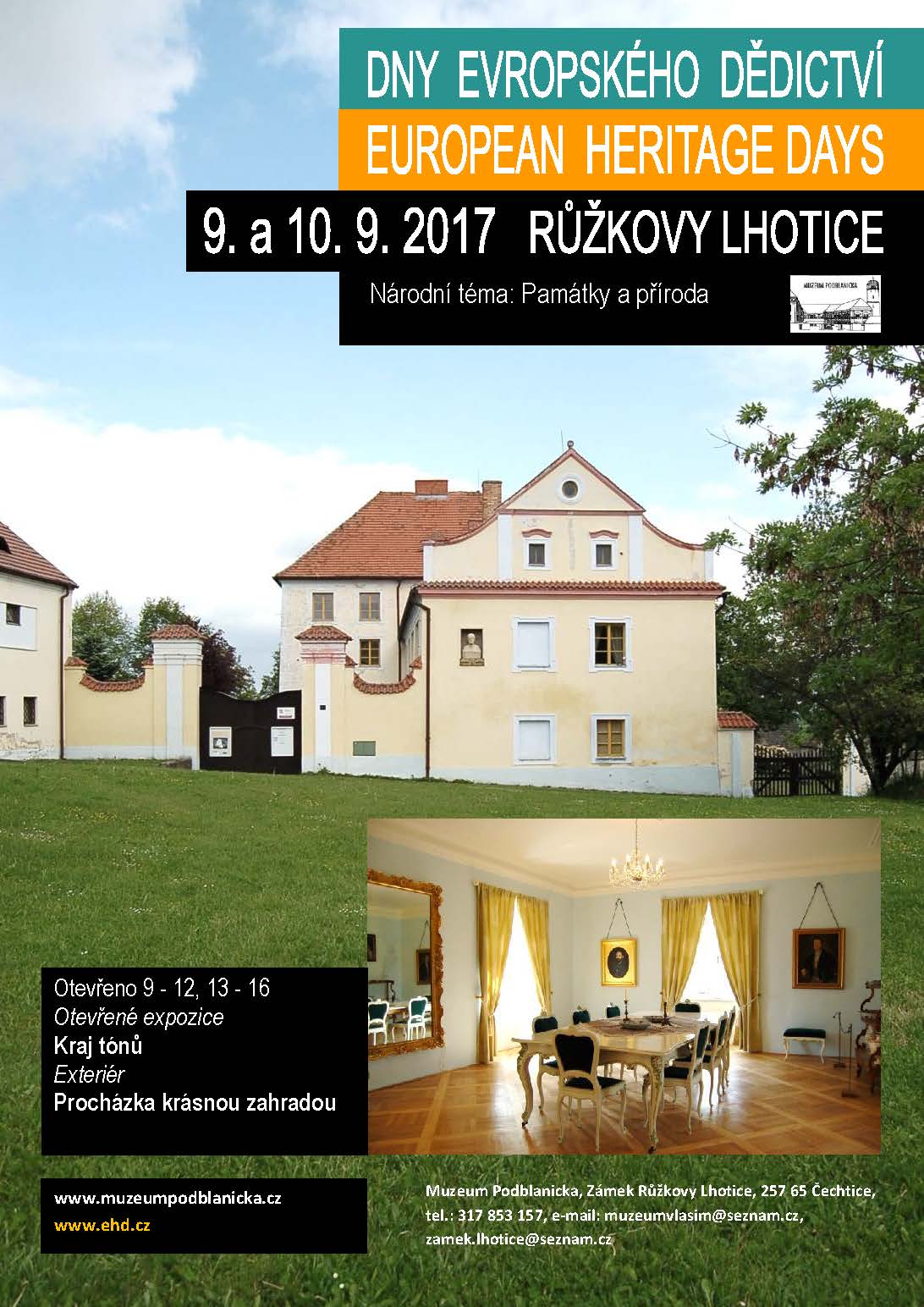 Každoroční Dny evropského kulturního dědictví se konají v zámečku Růžkovy Lhotice v sobotu a neděli, 9 a 10. září. Otevřeno od 9 do 16 hodin.