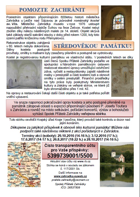 Sobota 29.10.2016 od 14 hodin, kostel sv. Víta v Zahrádce