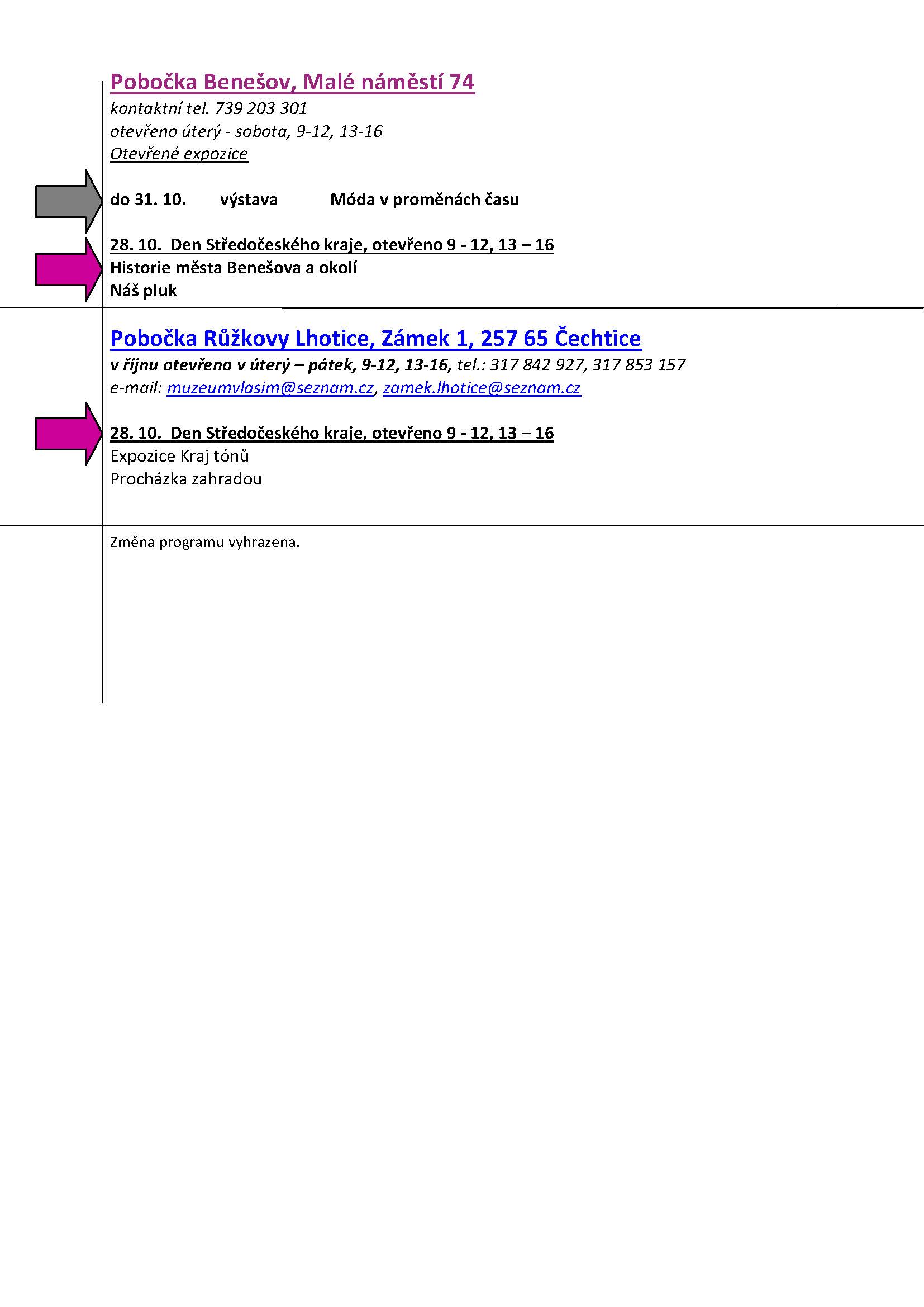 Muzeum Podblanicka zámek 1 Vlašim 25801 WWW: http://www.muzeumpodblanicka.cz Telefon: 317 042 927, 739 203 306 |