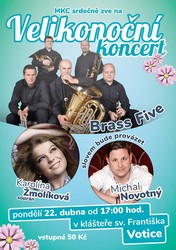 Skupina BRASS FIVE spolu se sopranistkou K. Žmolíkovou vystoupí na koncertě ve františkánském kláštěře ve Voticích.