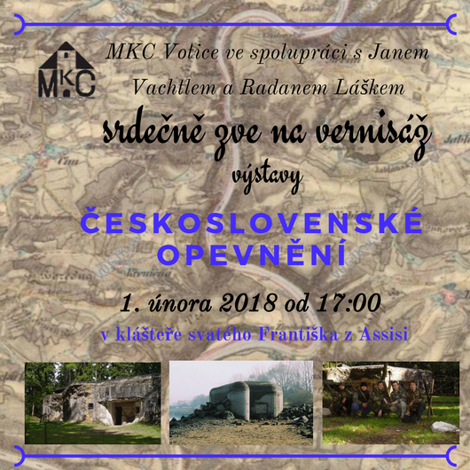 Ve čtvrtek 1. února 2018 se v klášteře svatého Františka z Assisi ve Voticích uskuteční vernisáž výstavy Jana Vachtla a Radana Láška s názvem Československé opevnění.