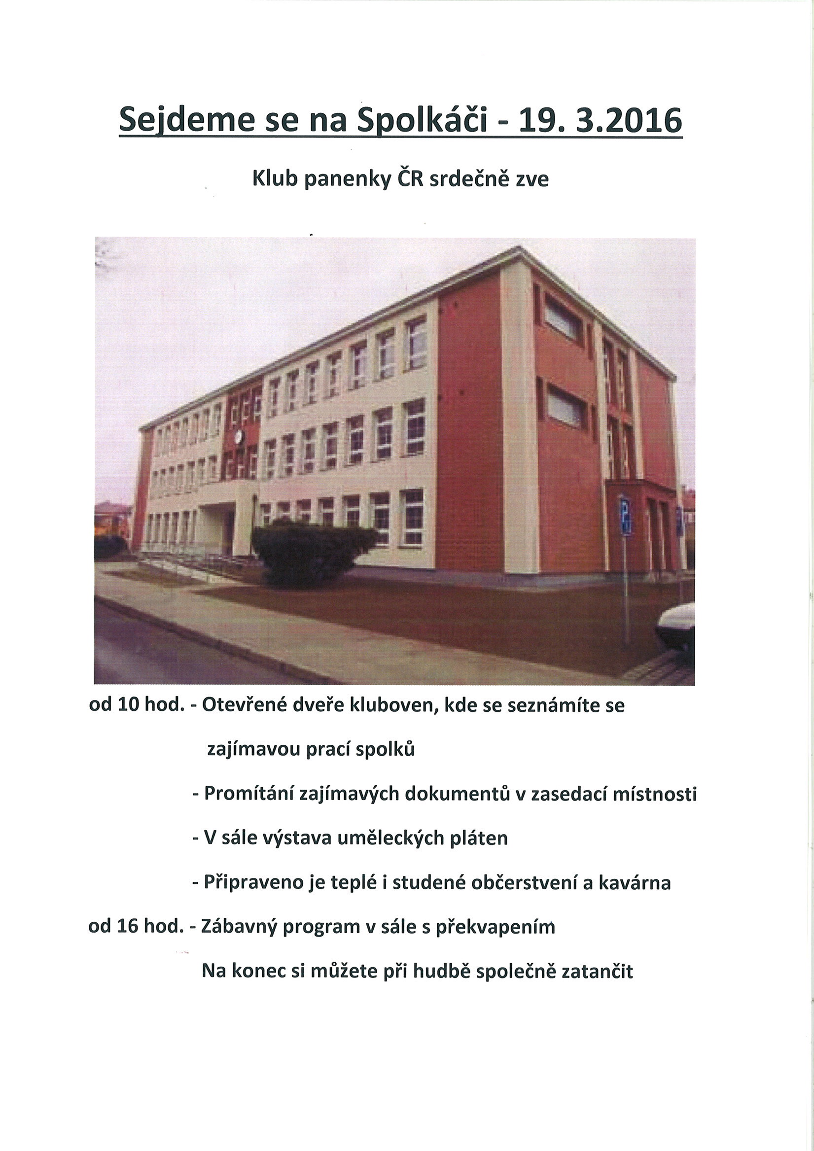 Den otevřených dveří ve Spolkovém domě. Zabavný program a občerstvení zajištěno. Více viz leták