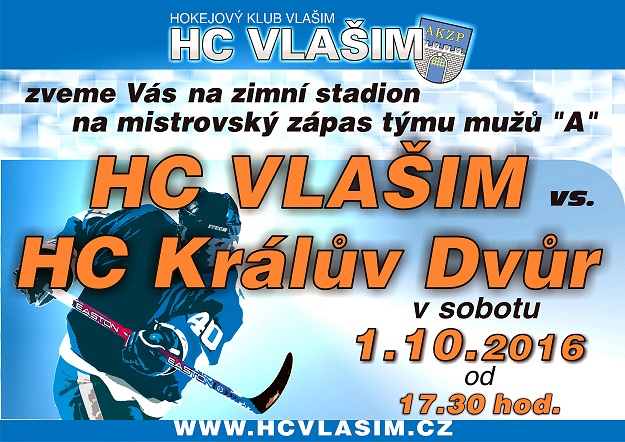 Další kolo krajské hokejové ligy je tu! V sobotu 1.10. přivítají vlašimští Rytíři na domácím ledě Dvůr Králové! Začátek utkání je v 17:30 hod.
